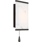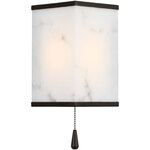The Cleor Bath Sconce by Christiane Lemieux takes its name from Cl d'orthe golden key to refined illumination. Inspired by the pared geometry and quiet glamour of 1930s Parisian interiors, this design transforms the wall plane into an illuminated sculpture. Its rectangular volume of faux alabaster, a sustainable alternative that mirrors the veining of natural stone diffuses a calm, ambient glow. Optional pull chain included.