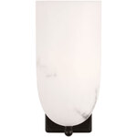 The Savina Wall Sconce by Chapman & Myers brings the collection's organic beauty to the wall with a clean, versatile profile. Its domed shade, made from mineral opaline and shaped by hand, features natural veining that gives each piece a unique identity. Mounted to a minimal metal frame, the sconce offers soft, diffused illumination ideal for bedrooms, hallways, living rooms, and walk-in closets. As part of the Savina Collection, it celebrates the quiet artistry of material and formwhere simplicity becomes a statement.