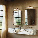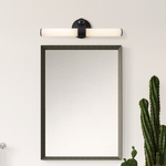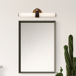 The Ledger Bathroom Vanity Light balances modern minimalism with classic details. Wrapped in vegan leather with a metal faster, the smooth opal glass cylinder provides a gentle, even glow. Perfect for a powder room.