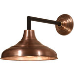 The Key Largo RLM lantern is handcrafted from solid copper by CopperSmith artisans, built to develop a rich patina and provide years of service. Featuring a straight arm mount, it provides focused lighting for both indoor and outdoor applications in residential or commercial settings. With a clean, utilitarian profile, it pairs classic RLM styling with premium materials.