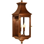The Pinnacle lantern is crafted as a wall-mounted lantern, built from solid copper and tempered glass designed to age gracefully with a natural patina. It provides electric illumination for everyday exterior use and can also be configured with yoke mount, ceiling mount, post mount, pier mount to suit a wide range of architectural applications.