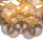 Both modern and whimsical, the Faye Chandelier is inspired by the charm of effervescent bubbles. Each clear etched or smooth smoked glass globe hangs from a round frame to form a dazzling shade. Bring playful sophistication to a kitchen, entry, or dining room with this piece.