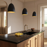 Modern yet timeless, the Grant Pendant brings sculptural style to any interior. A domed metal shade is supported by an oversized circular chain for added visual interest. When illuminated, the shade directs light downward, making this pendant perfect for task areas like a kitchen or dining room.