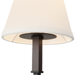 The Sloan Chandelier reimagines a traditional silhouette with a modern twist. Sleek gooseneck arms support squared candle taper bases. White linen shades provide the final touch. Perfect for a dining room or kitchen.
