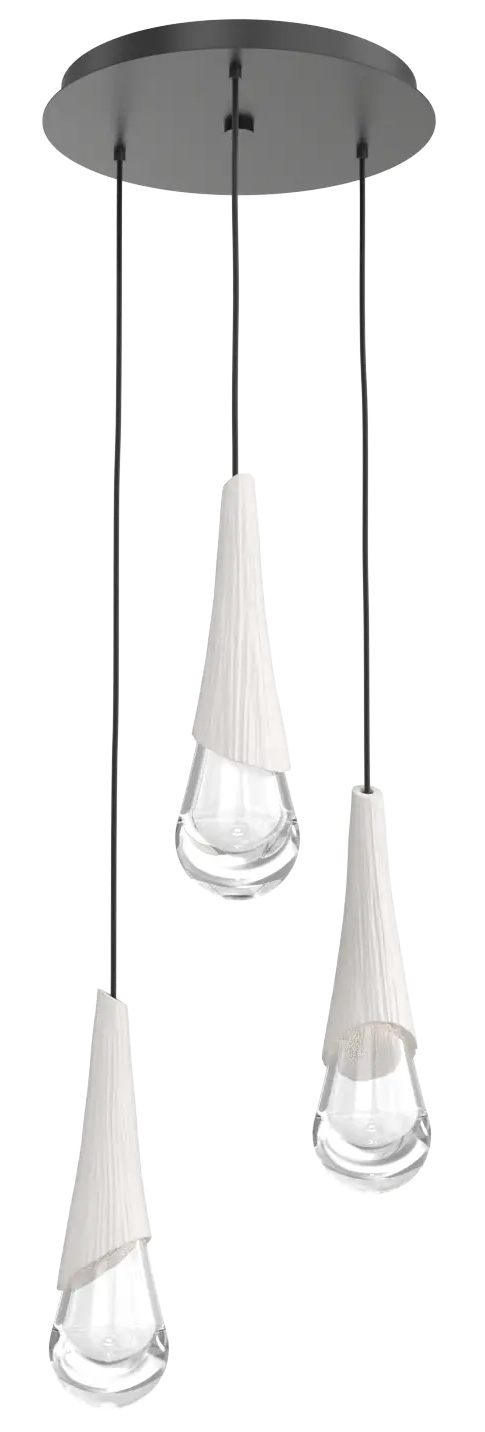 The Hailstone Round Multi Light Chandelier brings the natural beauty of a perfect raindrop to your interior space. This ethereal design fuses thick artisan hand blown glass, with a sculptural offset ceramic colored accent, casting warm shadows of light across your room. The result is an eye catching piece, wherever it is placed. Adjust each pendant to create you own unique look.