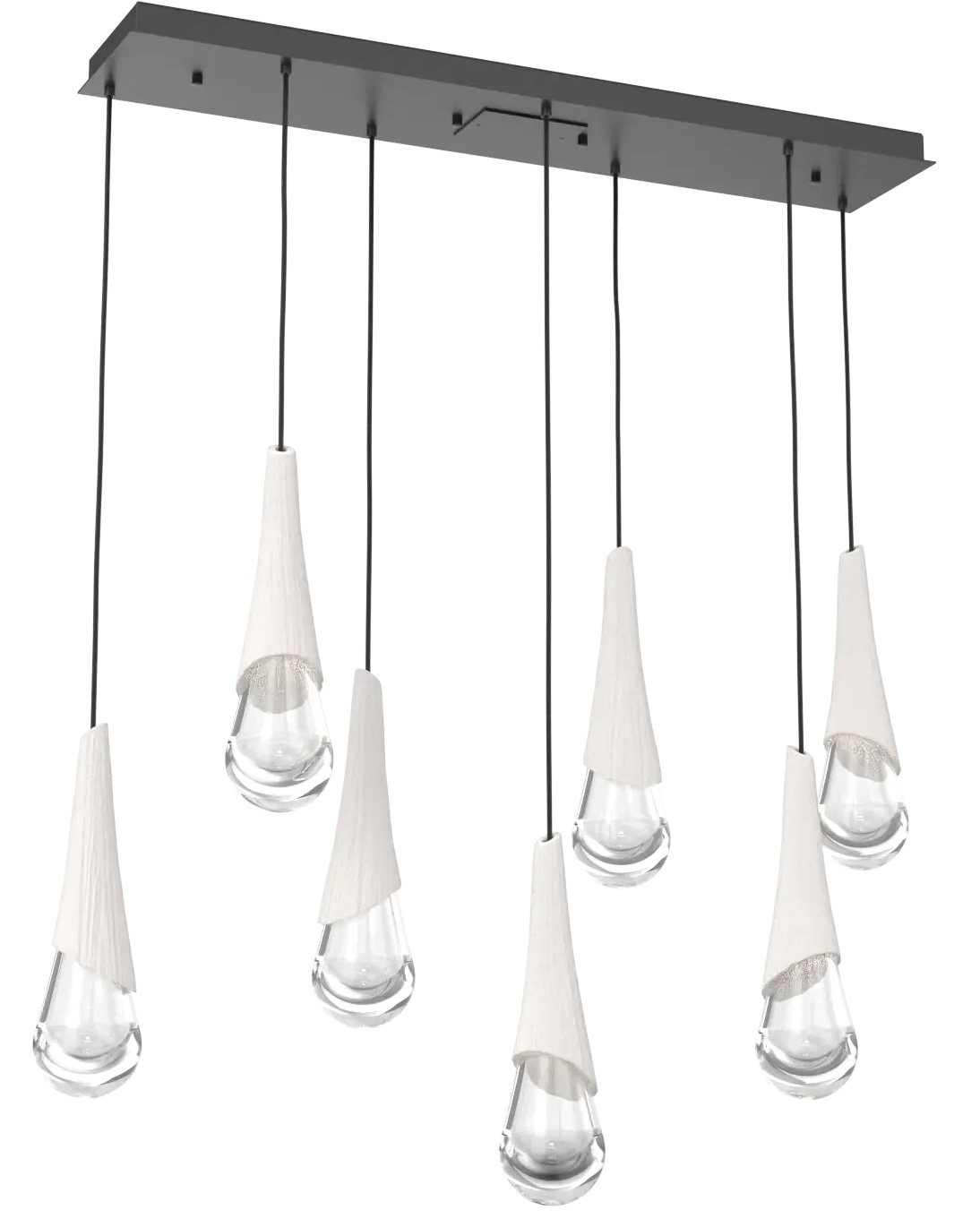 The Hailstone Linear Multi Light Pendant brings the natural beauty of a perfect raindrop to your interior space. This ethereal design fuses thick artisan hand blown glass, with a sculptural offset ceramic colored accent, casting warm shadows of light across your room. The result is an eye catching piece, wherever it is placed. Adjust each pendant to create you own unique look.