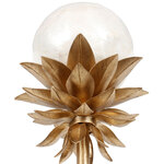 Introducing the Florette wall sconce a striking blend of botanical-inspired artistry and contemporary elegance. This sconce transforms any wall into a chic, gallery-like display with its unique floral design and elegant presence. Cradled by sculpted metal leaves in our Modern Gold finish, the natural capiz shell globe warmly diffuses the light and adds a softness only organic materials can.