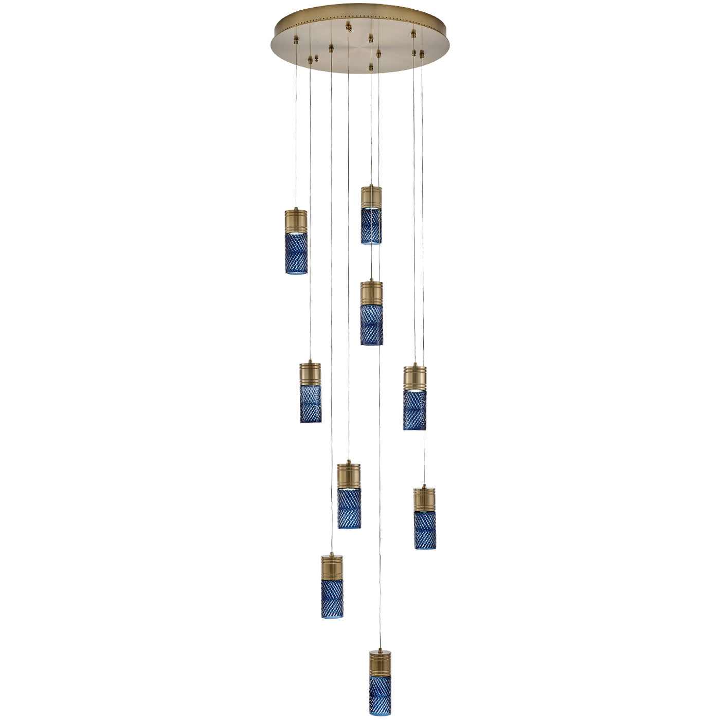 Inspired by the traditional Japanese craft of Edo Kiriko, the indigo colored diffusers of this fixture features precise, herringbone cuts that reveal a clear layer underneath. The aluminum, Winter Brass body holds each glass in place, and the LED light sources provide ample downlight, adding a functional, yet colorful statement fixture to any space. Features color-select technology which allows user to select between 2700K, 2900K, 3000K, 3500K and 4000K color temperature options.