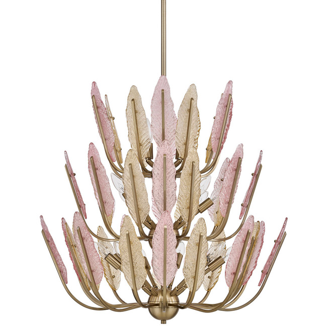 inchInspired by the warm Autumn sun filtering through crispy, color-changing leaves, this chandelier introduces soft colors and lightness to any space. Numerous gold and pink tinted glass leaves feature a dual sided surface, where the front mimics the natural veining found in leaves, and the back adds extra light diffusion and glow through the sugar glass texture. The warm Brushed Champagne Gold finish ties everything together into a naturally inspired, sophisticated fixture family. inch