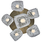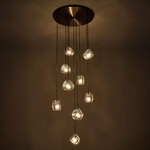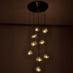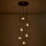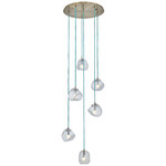 The versatile and contemporary Pallina Chandelier features a variety of multi drop arrangements to add a designer touch to any space. Inspired by the construction and pattern of the tennis ball, this unique, textured glass is paired with a coordinating color power cord.