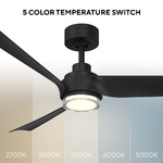 Sleek, modern, and refreshingly simple, the Chill LED Ceiling Fan brings relaxed sophistication to everyday spaces. The 54-inch smart fan delivers smooth, quiet airflow with an energy-efficient DC motor and a 3600-lumen tunable LED light for versatile ambience. Wet rated for indoor and outdoor comfort, Chill offers balanced proportions, clean styling, and intuitive control. Designed for effortless living, it's the perfect blend of simplicity, technology, and modern design. The Chill features a color-select switch which allows user to select between 2700K, 3000K, 4000K, and 5000K color temperature options. Battery operated Bluetooth remote control with wall cradle, light cap and light kit included. Optional Bluetooth hardwired wall control sold separately.