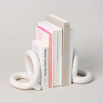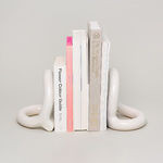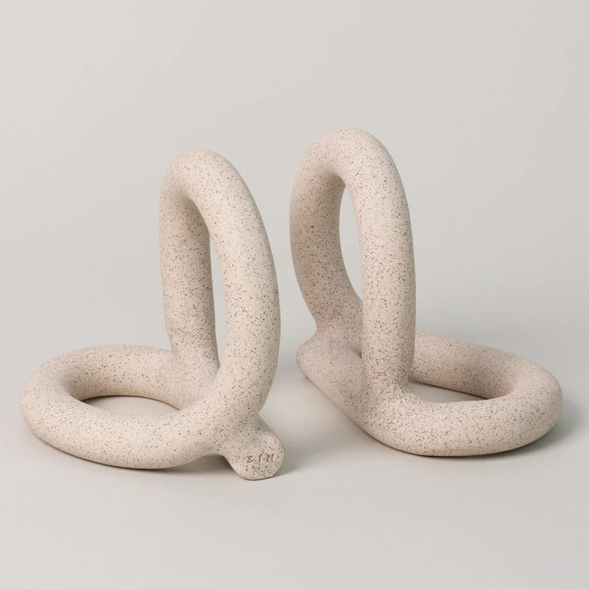 Meet Bacchus Bookends, the graceful swirls perfect for any bookshelf. Two stoneware loops form abstract shapes, lending a lightness to the stoneware material. Choose between warm sand or neutral cream. Sold as 1 pair.