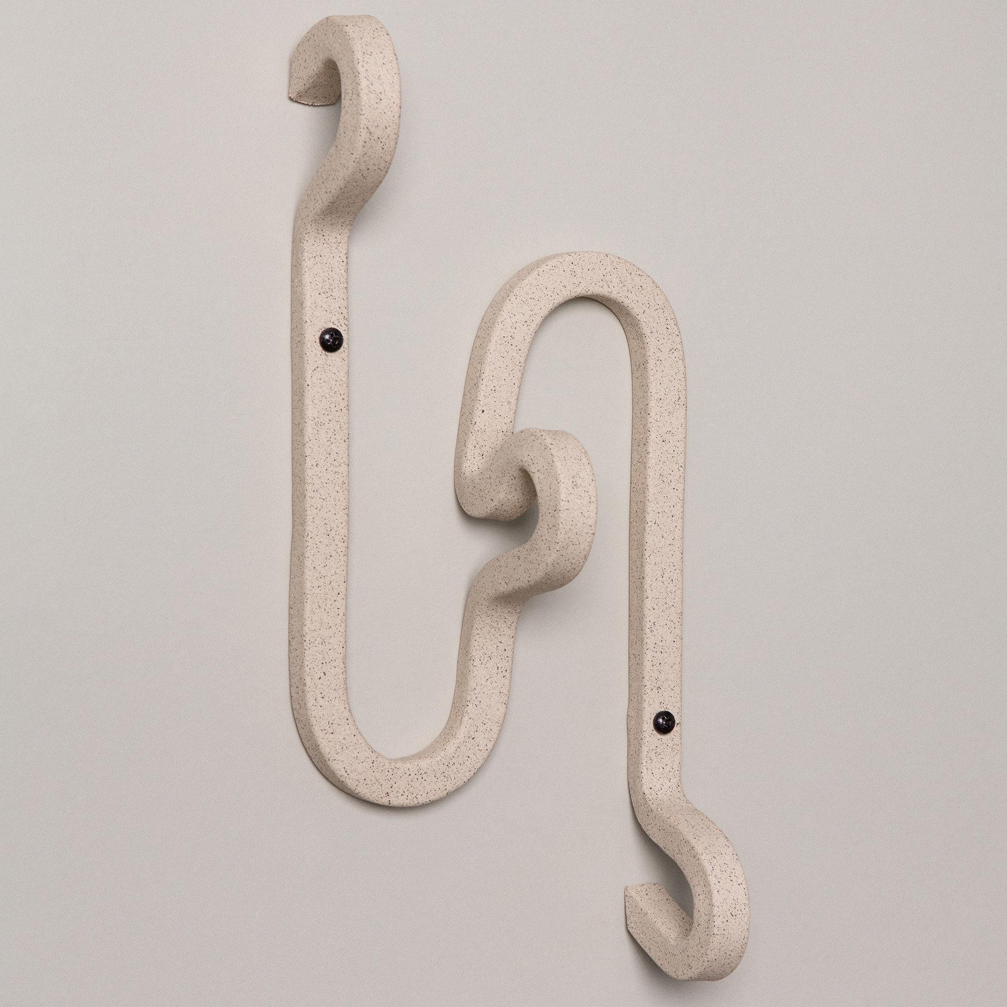 The For-Everything Narrow Rack is ready to hold it all. Handmade from a single square coil, it's designed to playfully store items across its undulating shape. Two offset hooks provide a place for bags, coats, or decorative belongings. Perfect for anywhere in the home from the entryway to the bathroom.