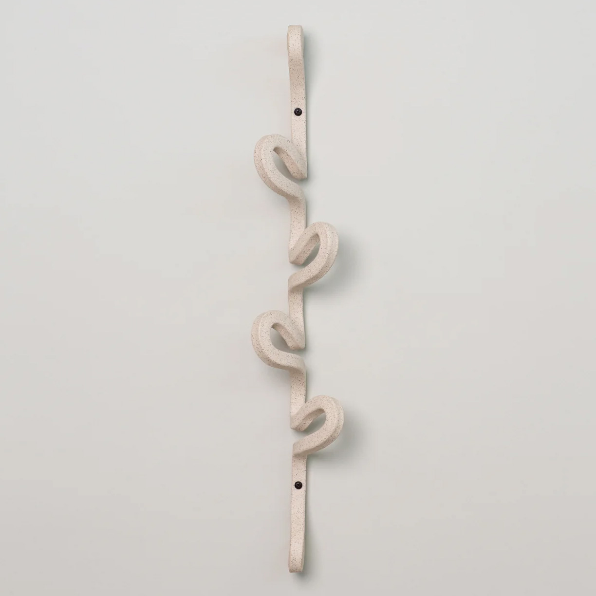 The For-Everything Vertical Rack is ready to hold it all. Handmade from a single square coil, it's designed to easily store items without taking up much space. Four offset hooks provide ample options for bags, coats, or decorative belongings. Perfect for anywhere in the home from the entryway to the bathroom.
