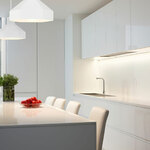 The Poly Pendant brings a clean simplicity to your interior space, The octagonal shaped cone shade, lined in white, creates warm, ambient shadows of light down, throughout your room.