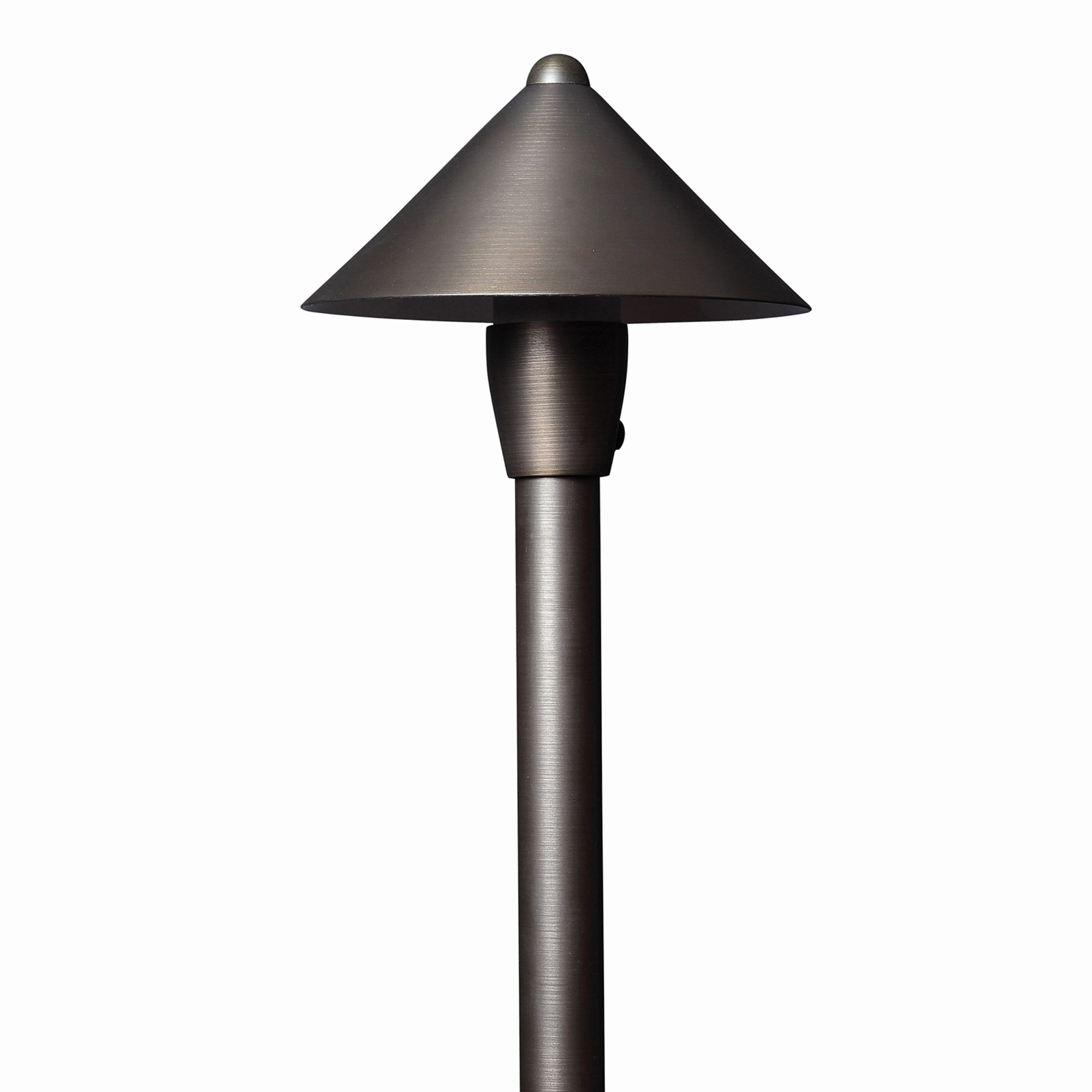 The Cone Path Light features a soft, organic shape that will complement any outdoor living space. Its cone shade directs light downward for paths, patio, or landscape areas. Includes a heavy duty PVC stake. Requires a 12V transformer (SKU: MTA75WA1215VREO), sold separately.