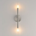 Civic styling using straight rectilinear channels radiating from a central connector. The light sources flare out both up and down with tapered candle covers creating a form evocative of a classic torch. This is a transitional look suited to a variety of architectural stylings. Triac or ELV dimming.