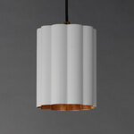 This refreshing collection features the nostalgic detailing of scalloped metal shades with gold leaf interiors. The hand applied gold-leaf interiors reflect the light source within the shades casting a warmer glow downwards. Triac or ELV dimming.