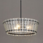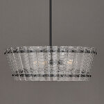 Evoking the softness of fabric through sculpted solids, thick clear cast glass panels, each with a tiered scallop motif, are gathered into tapered cone silhouette that shimmers with texture and depth. Framed in a rich finish, the design feels both heirloom and modern. Ruche brings a tailored glow to kitchens, entryways, or intimate dining spaces with refined charm. Triac or ELV dimming.