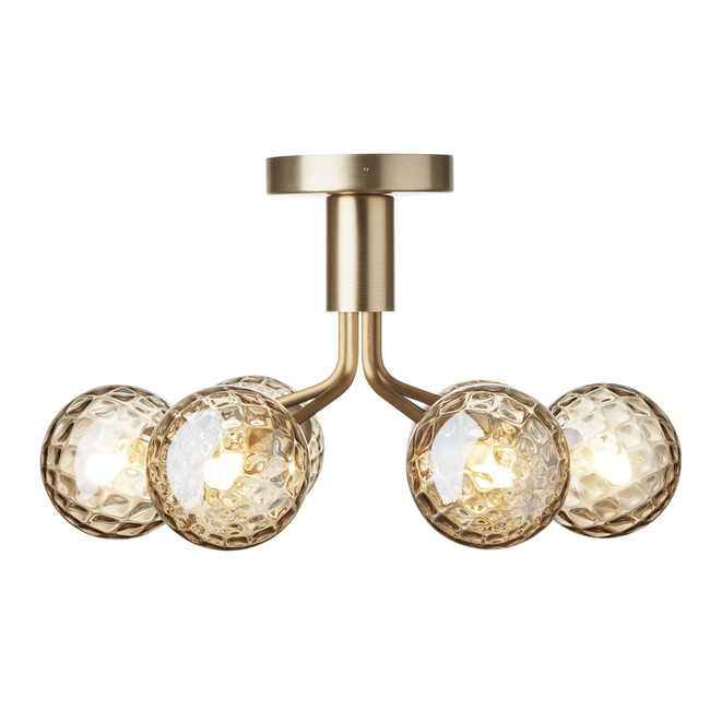 The Apiales Ceiling Light features an array of branching metal arms, each capped by a mouth-blown glass globe for a clean-lined, balanced look. The globes are available in smooth tinted or Opal glass for even light distribution, or textured optic glass for a more decorative touch.