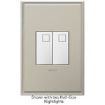 The Nightlight 1/2 Size is great for hallways or bathrooms. The Nightlight features a soft glowing LED light with four settings: Always Off, Low, Medium and High. Wall Plate required, but not included. 1.77 inch width x .89 inch height. ETL Listed.