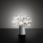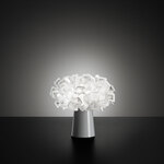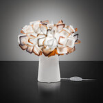 The Clizia series, which consists of colored interlocked squares in Opalflex assembled manually, evokes the story of the mythological nymph who, repudiated by the Sun, becomes Elitropio. This range, fruit of operative hands that shape the techno polymer as if it were smooth silk, expands with an unusual and striking table version (consisting of 230 squares in Lentiflex supported by a colored base). Clizia Table Lamp features numerous squares of Opalflex clustered into an intricate weave of texture and style in White, Black, Orange, Fume or Purple finishes. Product is magnetic, allowing easy removal for cleaning.