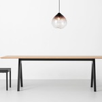 The Parison Pendant is mouth-blown from a mixture of Clear and Black or White glass. Its surface is a fluid gradient from opaque to transparent. Finish and cord in Black or White, matching the glass shade. 14.2 inch width x 14.2 inch height x 74 inch maximum length. UL and CE listed.