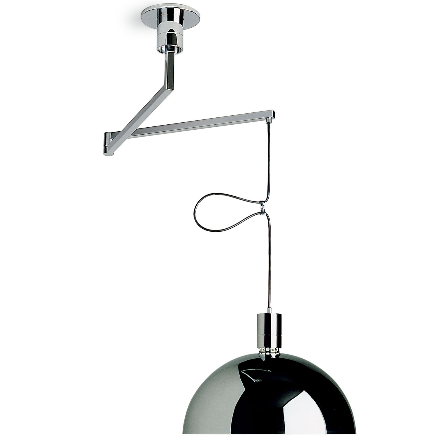 The AS41Z Pendant features a classic dome shape with the added functionality of a rotating jointed arm that allows the light to be repositioned. The length of the cord can also be easily adjusted with an included cable clamp. A Chrome or Black Chrome finish complements the pendant's design with a modern aesthetic.