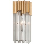 The elegant Charisma Wall Light features a Gold Leaf with Polished Stainless steel finish and Clear Crystal accents. Available in two sizes. 60 watt max 120 volt candelabra base bulbs are required, but not included. Small: 6.75 inch width x 14 inch height x 3.5 inch depth. Backplate: 4.25 inch width x 12.75 inch height. ADA compliant. Large: 9.75 inch width x 14.25 inch height x 5 inch depth. Backplate: 4.25 inch width x 12.75 inch height. UL listed.