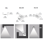 The MCL standard mounting clips are provided with every two feet of Light Channel and may be ordered separately as replacement or additiional parts. The MCL-075 rotates up to 75 degrees and the MCL-90 mounts channel at a 90 degree angle.
