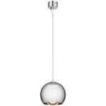 The Rendo Pendant features a Chrome finish with a Smoke outer glass shade and an inner cubic zirconia lens. Integrated 5.4 watt 120 volt LED light source. ETL listed.
