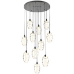 The Ellisse Round Multi Light Pendant creates a magic dance of light across your interior space. The optic blown glass casts dramatic shadows all around while the clean finishes blend seamlessly into your room. Available with Optic Smoke, Optic Clear, Optic Bronze, or Optic Amber glass with Matte Black, Metallic Beige Silver, Flat Bronze, or Gilded Brass finishes in 3, 5, 8, and 11 light options. Canopy size listed on the line drawing. Made in the USA. UL listed.