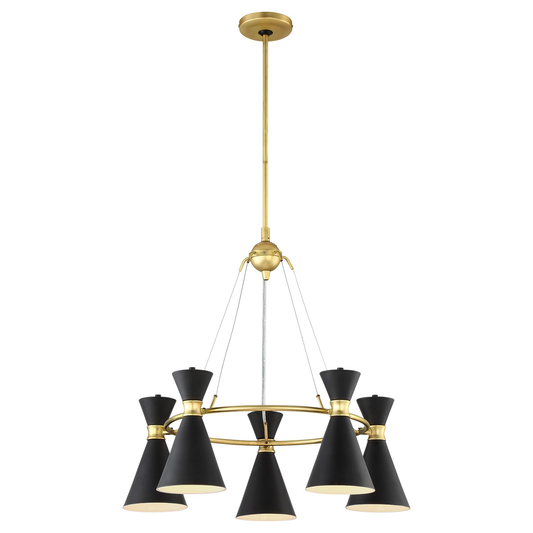 The Conic Chandelier features a Honey Gold finish with Black shades.