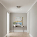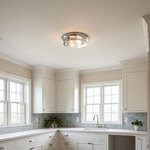 The retro-styled Hadley Ceiling Flush Mount features a Brushed Bronze, Chrome, or Oil Rubbed Bronze finish with a Clear glass diffuser. Two 60 watt max 120 volt A19 medium base bulbs are required, but not included.