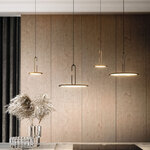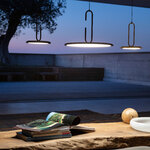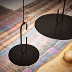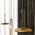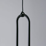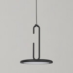 Clip Open Loop Pendant, designed by Daniel Debiasi and Federico Sandri, has a thin metal disc supported by an opened loop, with a cord that seems to be knotted. This unique piece is sure to draw attention where ever you hang it.