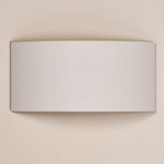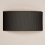 The Comodin Rectangular Wall Light showcases minimalist design featuring an arched ribbon or parchment shade that prevents the light source from spilling out the side. Its simple, curved silhouette is open at the top and bottom to provide dramatic up and down lighting. Suitable for standard US junction box.