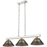 Straight line inspired detailing defines this beautiful Players Linear Pendant with Cone Acrylic Shades. Finished in metal and paired with smoke acrylic shades, this fixture would be equally at home in the game room, or anywhere else in the house needing a touch of modern charm. Adjustable rods are included to ensure the perfect hanging height.