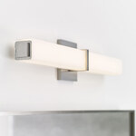 The Milan Bathroom Vanity Light shows off crisp lines in its elegant rectilinear form accented by a discreet metal band, elevating any contemporary bathroom or powder room. 24.5 inch light (120V): TRIAC or ELV dimmable. 36.5 inch light (120-277V): TRIAC, ELV, or 0-10V dimmable.