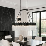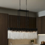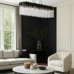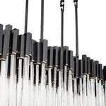 The Matrix Linear Suspension will dramatically improve the look and feel of your favorite indoor space. This large-scale hanging light fixture boasts the dramatic flair of a cityscape, thanks to the handsomely hammered elements. The strong, hand-forged recycled steel backing and 70's inspired glass rods work in unison to create a breathtaking look. Use this modern chandelier light to add depth and warm light to your favorite space.