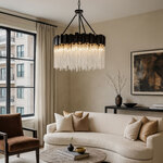 The Matrix Pendant will dramatically improve the look and feel of your favorite indoor space. This large-scale hanging light fixture boasts the dramatic flair of a cityscape, thanks to the handsomely hammered elements. The strong, hand-forged recycled steel backing and 70's inspired glass rods work in unison to create a breathtaking look.