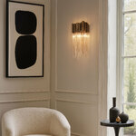 The Matrix Wall Sconce will dramatically improve the look and feel of your favorite indoor space. This beautiful fixture boasts the dramatic flair of a cityscape, thanks to the handsomely hammered elements. The strong, hand-forged recycled steel backing and 70's inspired glass rods work in unison to create a breathtaking look.