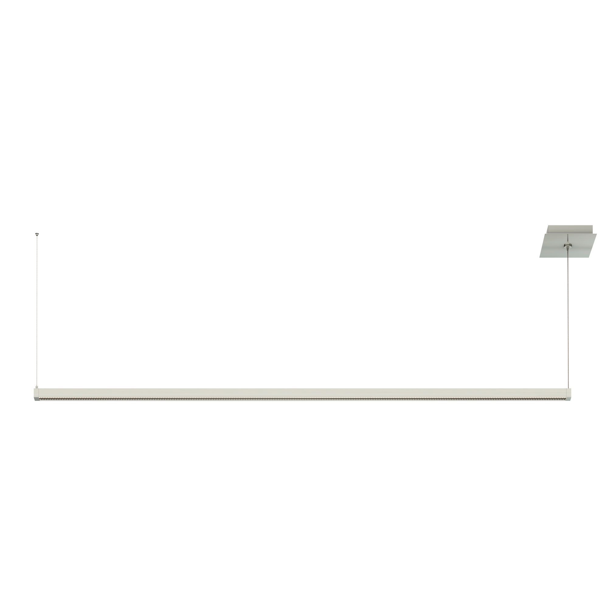 Nova Warm Dim Power Up/Down Suspension with End Feed offers both direct and indirect light which can be controlled independently. Nova is available in various increments from 36 to 120 inches and features a diffused white 100 degree downlight lens with optional black or white louver and clear frosted 60 degree uplight lens, multiple finishes, 10 LED watts per foot, and Warm Dim 2700K to 2000K (27D) or 3000K to 2000K (30D) color temperature. 84 inch maximum length for Chrome finish. Includes square canopy with 120V/24VDC electronic low voltage LED power supply and adjustable 12 foot coaxial and aircraft cables (additional aircraft cables included for support when fixture exceeds 96 inch). Dimmable with electronic low voltage dimmers (recommended: Lutron Diva DVELV-300P, Lutron Skylark SELV-300P, Lutron Maestro MAELV-600, Lutron Radio Ra 2, or Legrand, Adorne ADTP703TU, sold separately. ETL listed. Fixture includes a 5 year warranty. Optional accessories sold separately. Product is built to order.