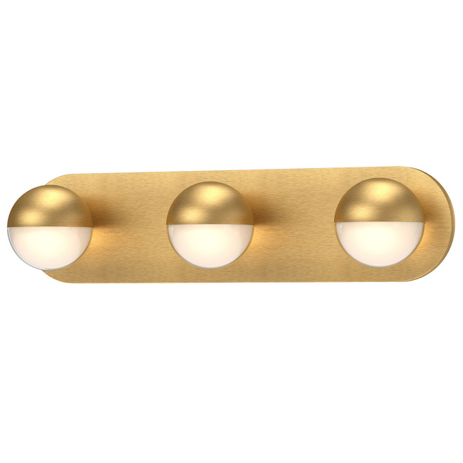 The Pluto Bathroom Vanity Light brings a stunning look to your interior space. The smooth frame holds spherical forms, each where half of is clear acrylic with a frosted interior. May be mounted facing up or down.