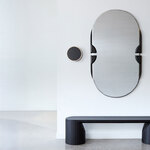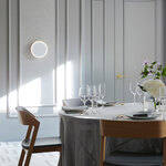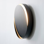 The Horizon Wall Sconce is a minimal disk which appears to float off the wall. A simple push on the disk changes the direction and amount of light. The sophisticated construction creates an unbroken ring of light, revealing no fasteners.