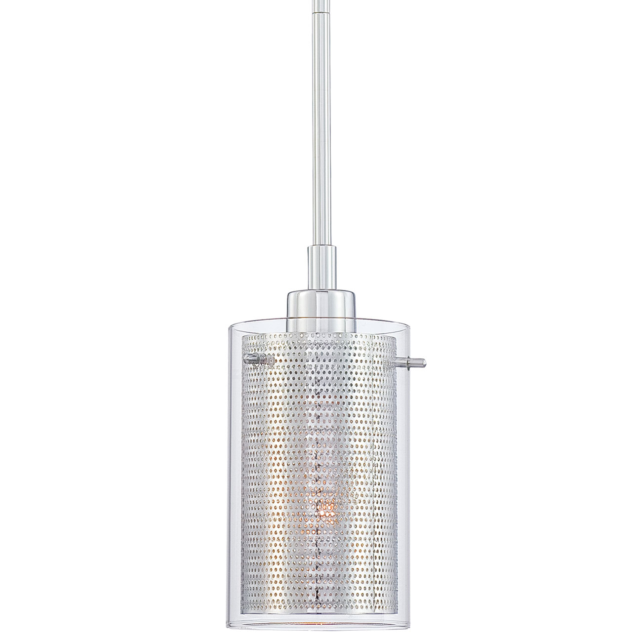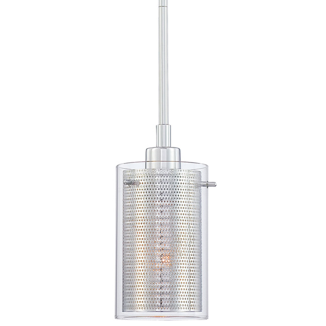 The Grid II Pendant features a Clear outer glass shade with Chrome Mesh inner shade and Chrome finish.