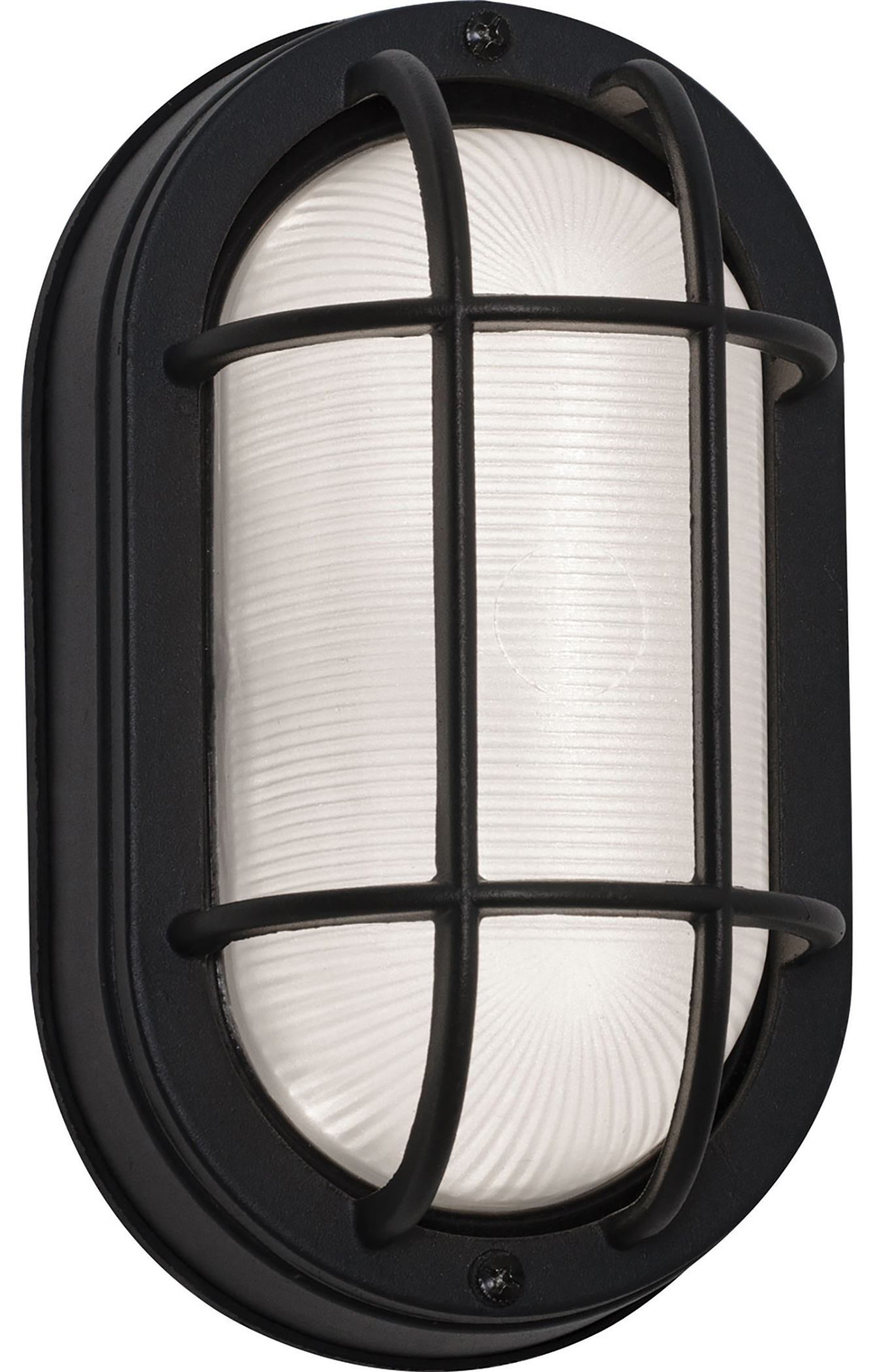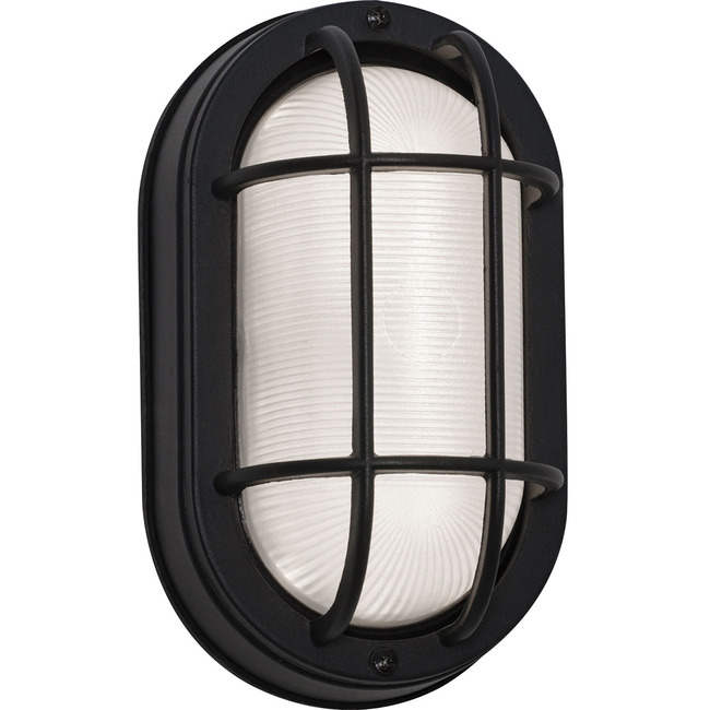 The Cape Outdoor Wall Light features a die-cast aluminum housing with protective guard and Frosted ribbed glass that casts warm shadows of light across your area. Can also be used indoors for a nautical look.
