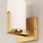 The Dart Wall Sconce is a Modernist inspired fixture that features a Satin White glass cylinder to drive home the clean and modern look. The steel frame utilizes a dramatic angle and simple geometry that is popular is Modernist work. The Dart can be installed either up or down. Dimmable via Triac or electronic low voltage (ELV) dimming.
