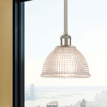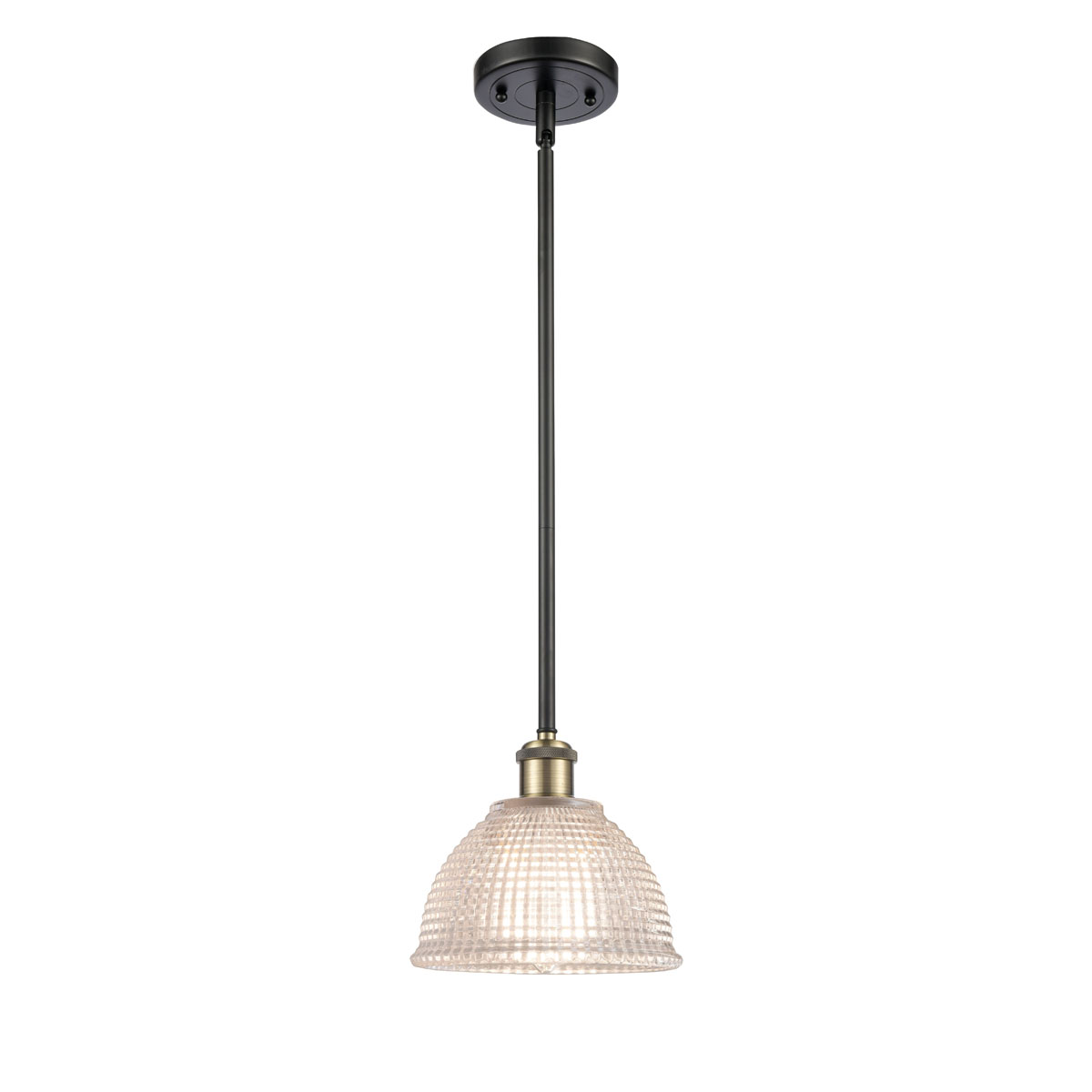 The Arietta Pendant features a textured dome Clear glass shade available in a variety of finishes.