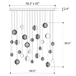 The Dark & Bright Star Linear Chandelier is a grouping of small lighted objects that are powerful in both design and craft. The light source is at the end of each of the pipes finished in Anthracite or Brushed Gold, the pipe is then placed within the mouth-blown glass piece, creating the shining center of a precisely cut polished Cigar or sandblasted White with Clear crystal stars. Available with Anthracite or Brushed Gold accents and White canopy.