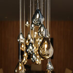 The Soap Mini Linear Multi Light Pendant offers the magic of iridescence, the characteristic features of a soap bubble. When lit, their metallic sheen magically transforms to iridescent and translucent. Each piece is mouth blown crystal with a metal coating, making each piece an original in both shape and color. Combination of Gold and Blue pendants with Anthracite details. Includes White canopy, power supply, and varying cord lengths (see installation instructions for more information). TRIAC and 0-10V dimming.